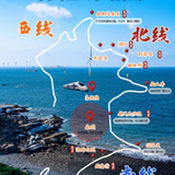 平潭北部生态廊道,亦称“岚道”,位于平潭主岛北部的苏平片区,全长约21.62千米。始于白青青峰村,止于苏澳看澳村,自东向西,宛若游龙匍匐于“麒麟头”(平潭主岛形似麒麟,岚道白青段各山头被当地人统称为“麒麟头山”)。 廊道沿海而置、动静结合。来到这里,你会忍不住驻足停留。倾听海浪的激昂乐章,聆听风车旋转的和声;欣赏大自然神奇的海蚀地貌,醉心于波光粼粼的落日余晖;感受山海石厝的美丽交融,沉浸在梦回千年的美丽中。