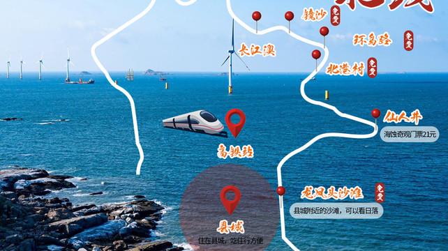 - :📑服务保障:一单一团:不拼团不拼车,私密出行,乐享假期; 🎨随心定制:景点顺序、游玩时间、出发时间均由您决定~ 🤵 VIP管家:线上管家随时在线响应需求,行前提醒+行中播报,为您的行程保驾护航; 👨✈️车队司机:严选车辆和司机,平稳驾驶,认真负责,热情贴心; 📃无购物无自费:双重条款保障行程,拒绝推销车售,还您纯净之旅; 🚩【缤纷景点】仙人井&东海仙境:览看大自然的鬼斧神工 山海相连 ;猴研岛&68海里隔海相望台湾岛;北港村打卡亲子综艺《爸爸去哪儿》的拍摄地🎬️&听石头会唱歌+特色石头厝 ;北部生态长廊:滨海长廊&漫步玻璃栈道;长江澳风车沙滩:邂逅蓝天大海和风车;龙凤头海滨浴场&坛南湾:沙滩逐浪 畅玩海滨 捡拾贝壳! 💒自选酒店:2晚平潭岛5钻酒店及房型任选,自由下榻·称心如意。
