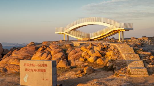 猴研岛位于平潭澳前镇东澳村,岛上立着一块写有“祖国大陆—台湾岛最近距离68海里”字样的石碑,与台湾新竹南寮渔港仅相距68海里,相当于126公里。整个猴研岛放眼所到之处皆为岩石,岛上怪石嶙峋,草木稀少,是平潭岛“光长石头不长草”的典型代表。游客可以在这里欣赏到错落分布的大石块、停泊于此的渔船、远处人家的寥寥炊烟,映衬着宽广宁静的海湾,体验其慑人魂魄的魅力。