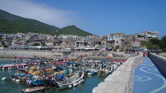 猴研岛位于平潭澳前镇东澳村,岛上立着一块写有“祖国大陆—台湾岛最近距离68海里”字样的石碑,与台湾新竹南寮渔港仅相距68海里,相当于126公里。整个猴研岛放眼所到之处皆为岩石,岛上怪石嶙峋,草木稀少,是平潭岛“光长石头不长草”的典型代表。游客可以在这里欣赏到错落分布的大石块、停泊于此的渔船、远处人家的寥寥炊烟,映衬着宽广宁静的海湾,体验其慑人魂魄的魅力。