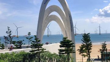 长江澳沙滩是平潭三大海滨沙滩之一,沙质细白。拥有福建较大规模的风力发电田,一座座风车排列得错落有致,碧海风车和蓝天白云,美不胜收。