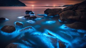 平潭,这座福建的海岛,凭借着独特的水文条件,成为国内首屈一指的“蓝眼泪”观赏地。“蓝眼泪”其实是一种生物发光现象,由夜光藻和海萤这两种海洋浮游生物引发,当它们受到海浪拍打、船体划过等外界刺激时,便会发出迷人的浅蓝色光芒。