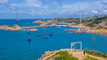 位于平潭北部的长江澳风力田,不仅提供了洁净的能源,也是摄影爱好者们眼里的美丽景致。远远地望过去,一座座风车排列得错落有致,或高高耸立在沙滩上,或从树丛中伸出来,在空中尽情地舞动着,蓝天、白云、碧海、风车组成的画面有着童话般的意境。