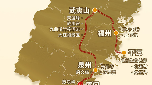 开元寺·泉州西街·鼓浪屿·泉州古城·武夷山·三坊七巷·上下杭·平潭岛