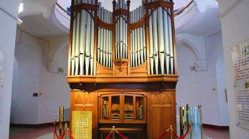 八卦楼风琴博物馆坐落于鼓浪屿东北部的笔架山东北麓,俯瞰厦门港,始建于1907年,1930年穹顶封顶,历时23年,主楼建筑面积6300平方米,其体量和高度都是鼓浪屿别墅之首。独特的地理位置与曲折的建造过程,使它成为中国近代以来社会变迁的历史见证。