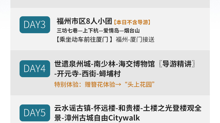 - 缤纷体验:预订享立减,福州平潭8人小团+厦门/漳州/泉州16人小团,双城精选5钻酒店