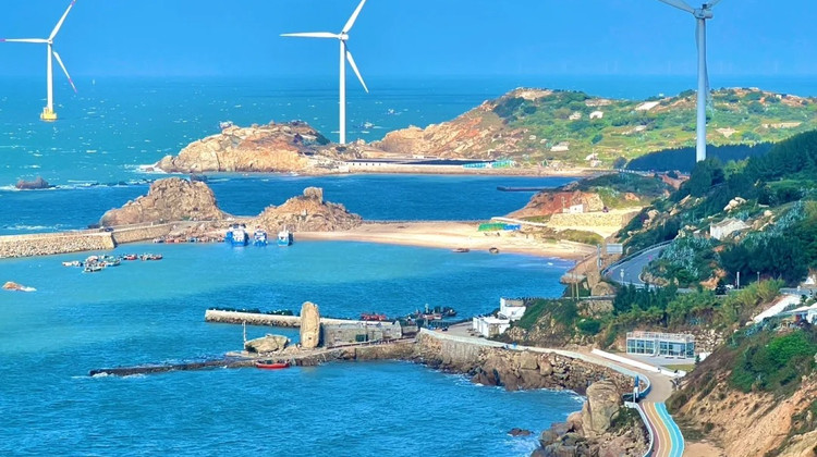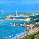 长江澳海滩是平潭三大海滨沙滩之一,沙质细白。拥有福建较大规模的风力发电田,一座座风车排列得错落有致,碧海风车和蓝天白云,美不胜收。