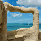 68海里景区由猴研岛、研后岛、限山岛三个美丽小岛和东澳沙滩组成。景区内怪石嶙峋,草木稀少,是平潭岛“海蚀地貌”的典型代表。这里不仅有母子猴隔海相望的动人传说,还有象征着两岸情深的“墨水石柱”、寓意着乡愁与期盼的“两岸同心窗”和“望归石”,以及体现两岸一家亲的“两岸同心石”等文化景点。游客可以在此感受山盟海誓、海枯石烂的浪漫情节,体验原生态、淳朴的海岛风情。景区配备了完善的旅游设施,游客可以乘坐公交车或自驾前往,步行或乘坐观光车游览。